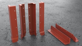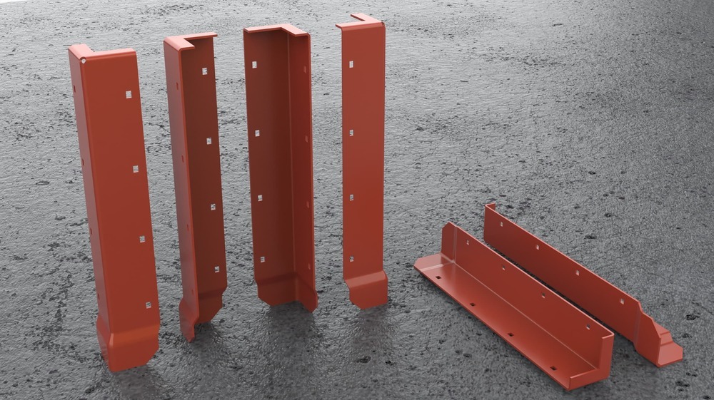 Wir bieten konstruktive Stahl-Eckbeschläge in der Farbe Boxenrot,